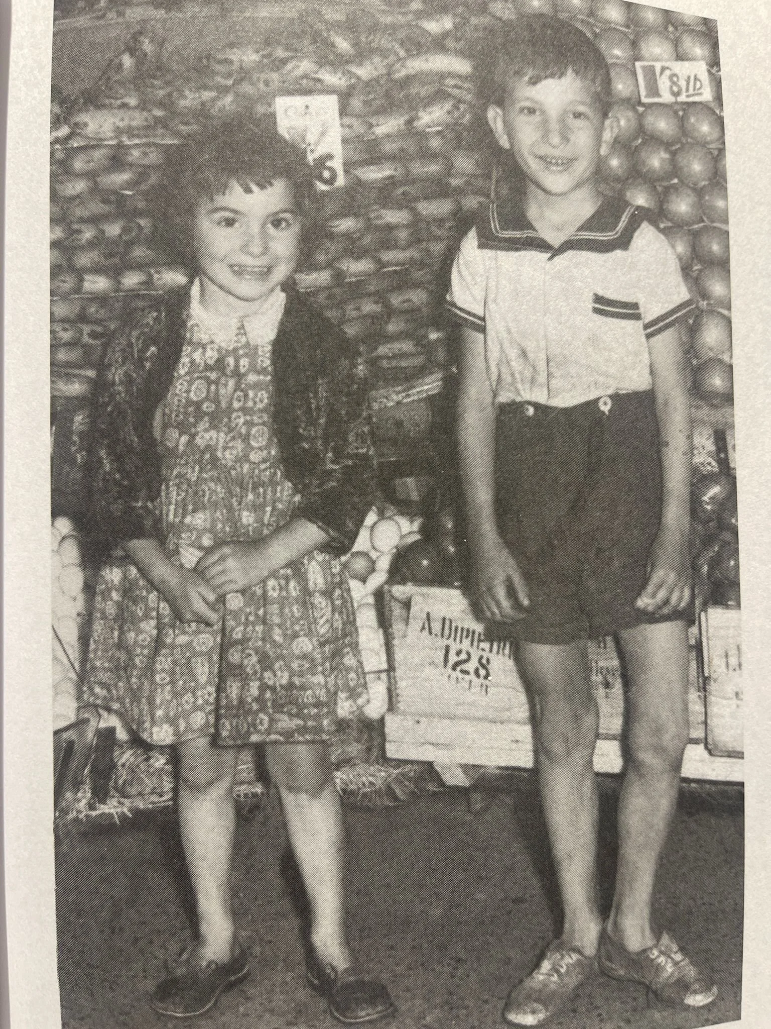 Mimma (left) in her Grandparent’s fruit shop with Peter.